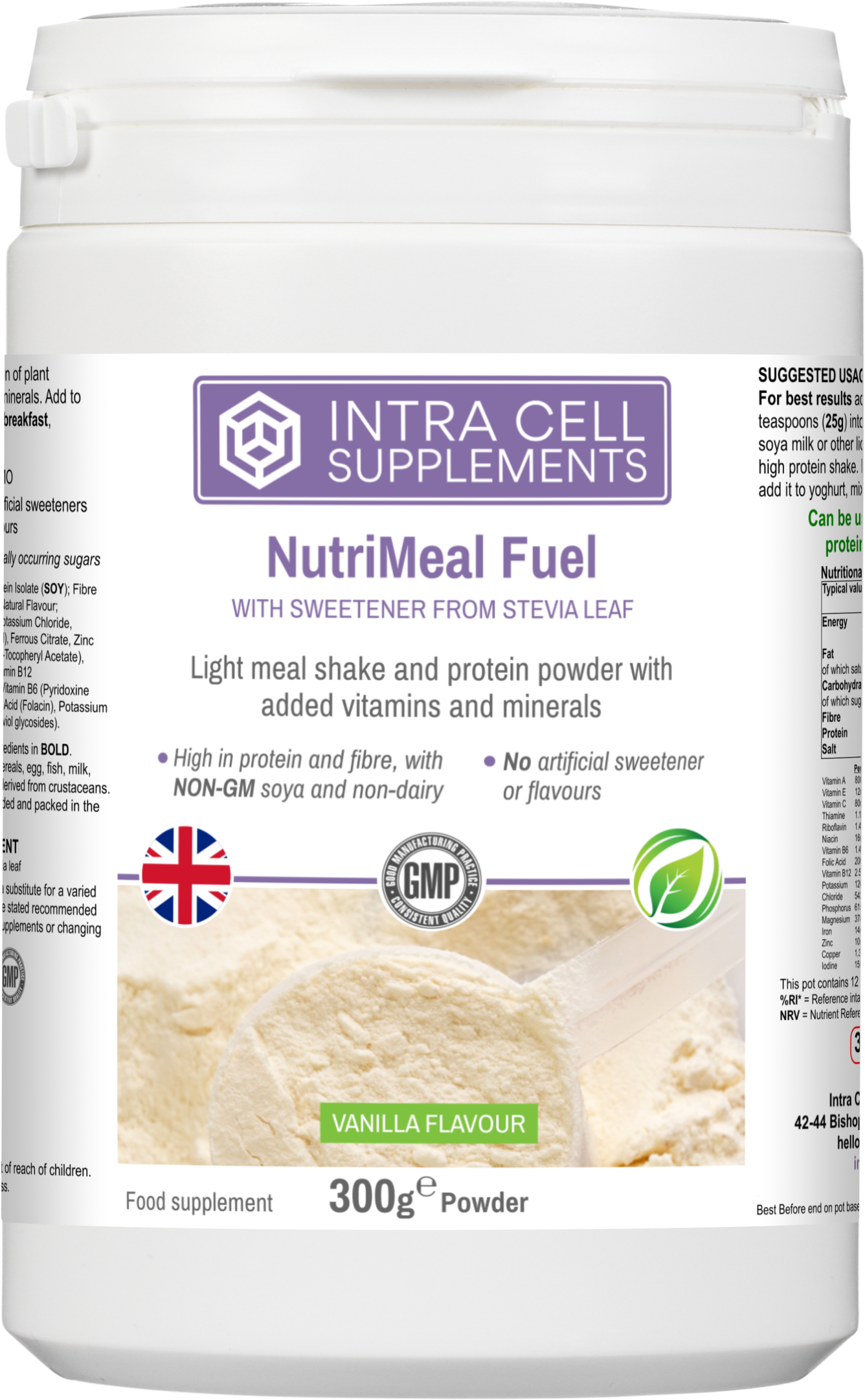Non-GM soy protein isolate for muscle support, paired with chicory root fibre for digestive wellbeing.